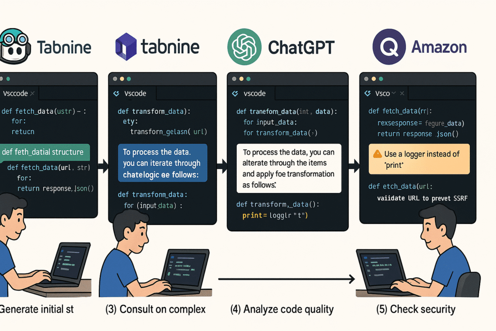 GitHub Copilot, Tabnine, Amazon Q, ChatGPT, Cody 등의 도구를 상황에 맞게 활용