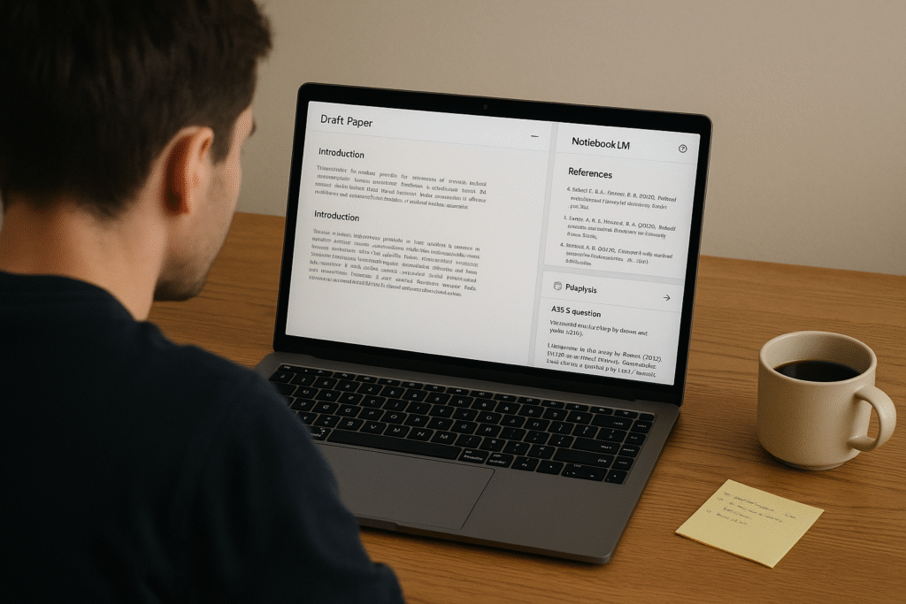 논문 초안과 참고 문헌을 함께 업로드하면 NotebookLM이 인용 패턴을 분석하고 개선점을 제안할 수 있습니다: